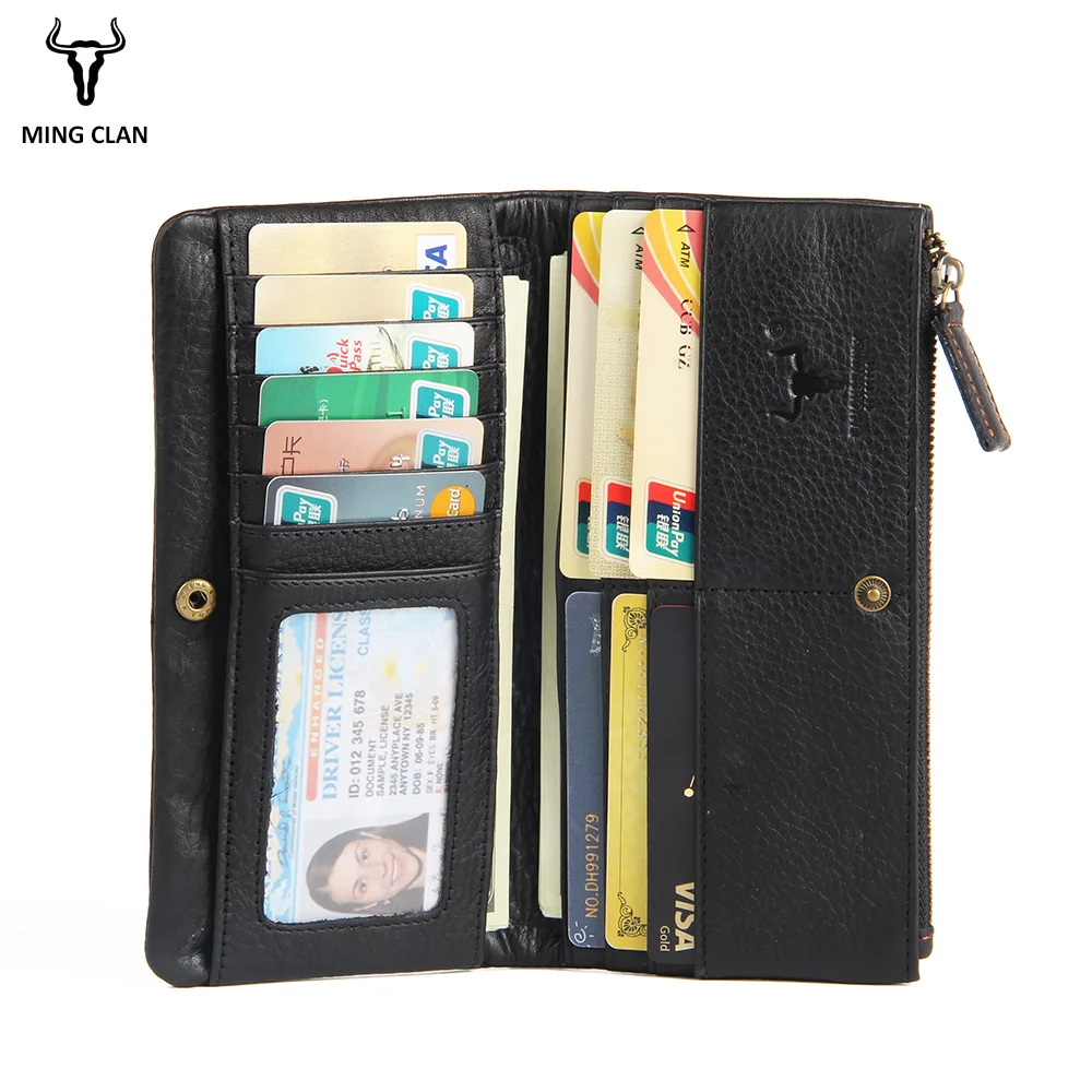 Good Product Mingclan Full Grain Leather Wallet Zipper Coin Purse Card Holder Collection Long Clutch Wallets Pho