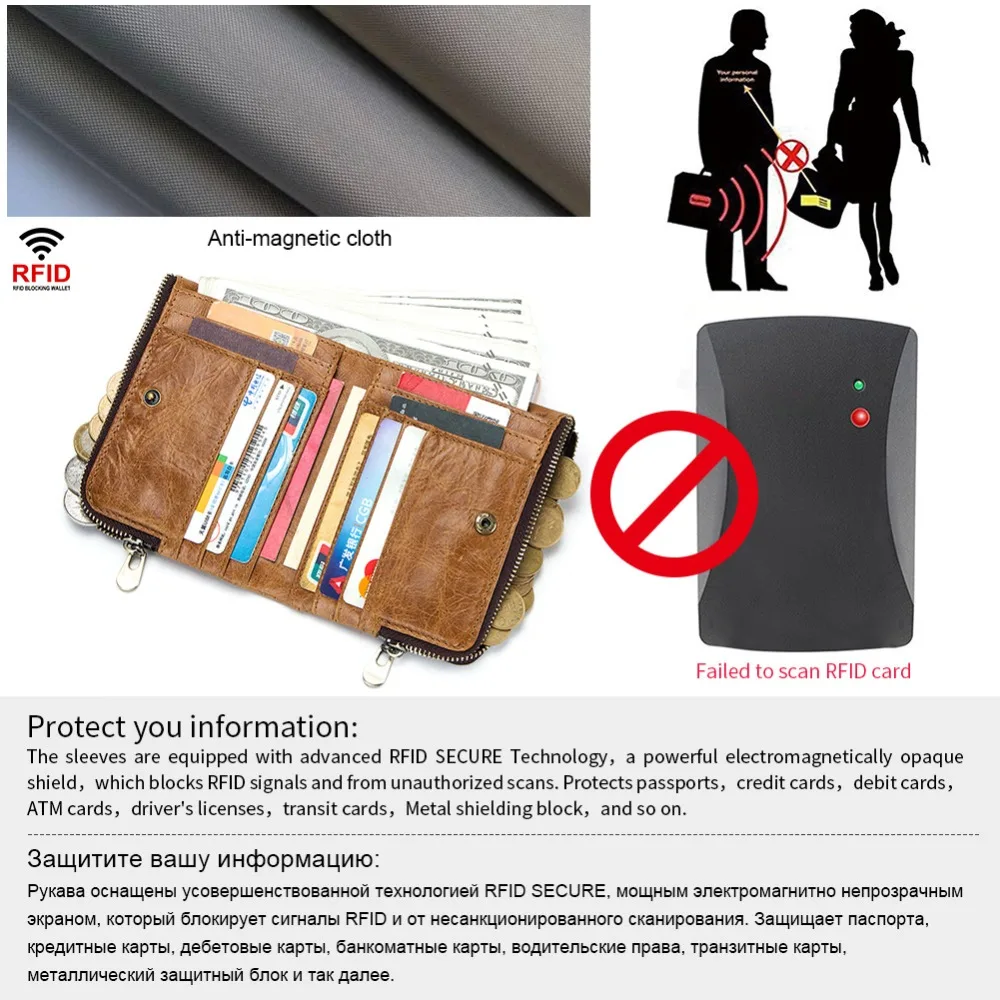 Big Deal KAVIS Rfid 100% Genuine Crazy Horse Leather Wallet Men Small Mini Portomonee Male Female Women Coin